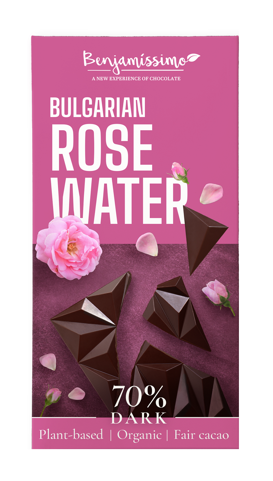CZEKOLADA GORZKA Z WODĄ RÓŻANĄ BEZGLUTENOWA BIO 60 g – BENJAMISSIMO