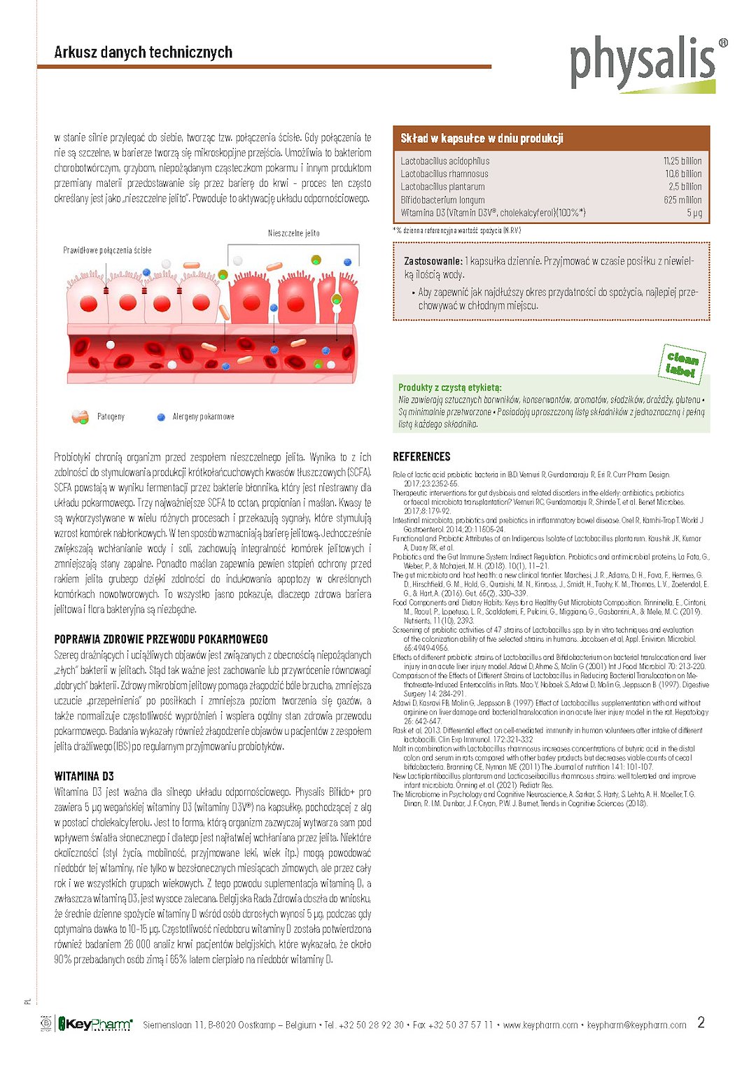 Nasza flora jelitowa tworzy genialny ekosystem. Physalis Bifido+ pro zawiera mieszankę czterech „dobrych” bakterii: jedną Bifidobacterium i trzy Lactobacillus (Bifidobacterium longum, Lactobacillus acidophilus, Lactobacillus plantarum i Lactobacillus rhamnosus). Ponadto zawiera również wegańską *witaminę D3 pochodzącą z alg (witamina D3V®) w postaci cholekalcyferolu, która wspomaga układ odpornościowy.