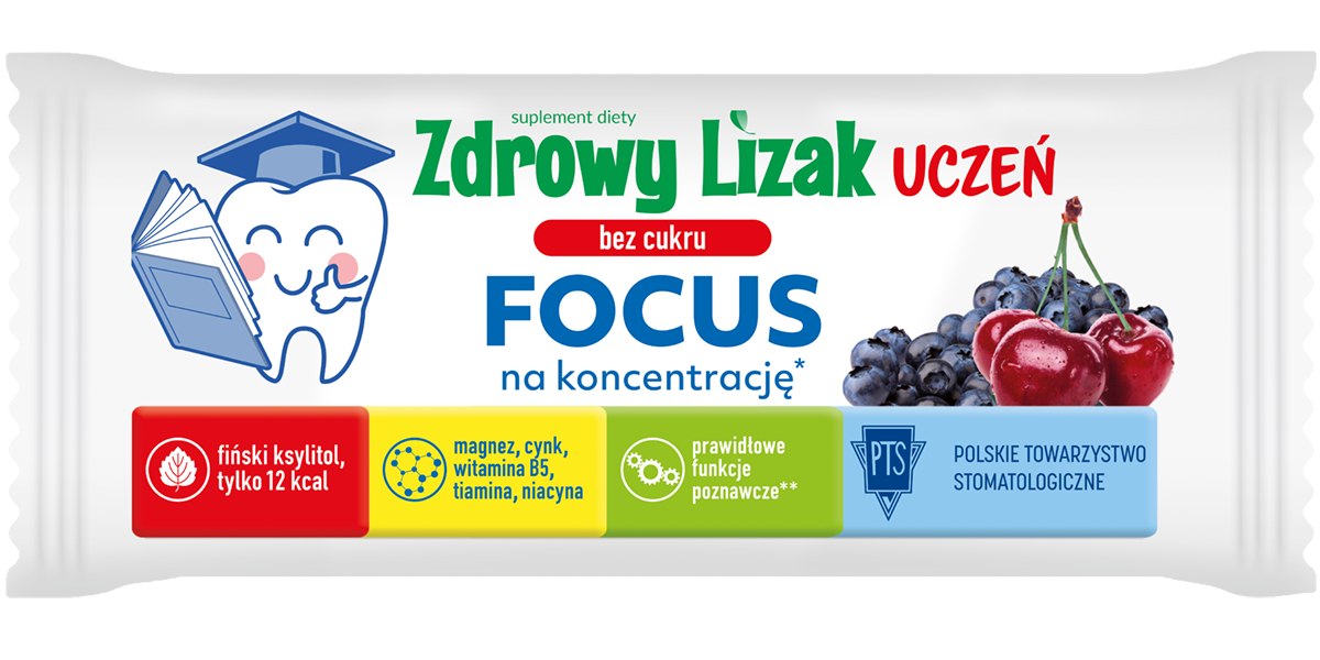 Suplement diety Zdrowy Lizak UCZEŃ FOCUS to nowy lizak stworzony z myślą o dzieciach w wieku szkolnym polecany do spożycia w okresie wzmożonego wysiłku umysłowego i potrzeby koncentracji.