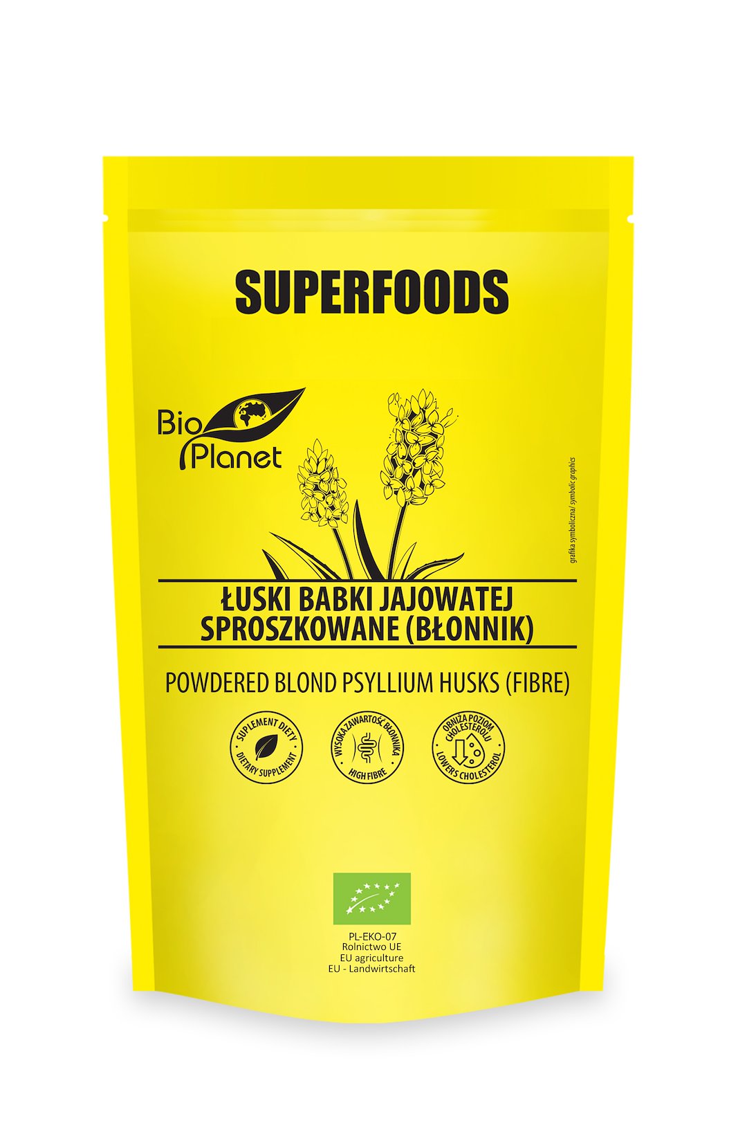ŁUSKI BABKI JAJOWATEJ SPROSZKOWANE (BŁONNIK) BIO 150 g – BIO PLANET SUPERFOODS